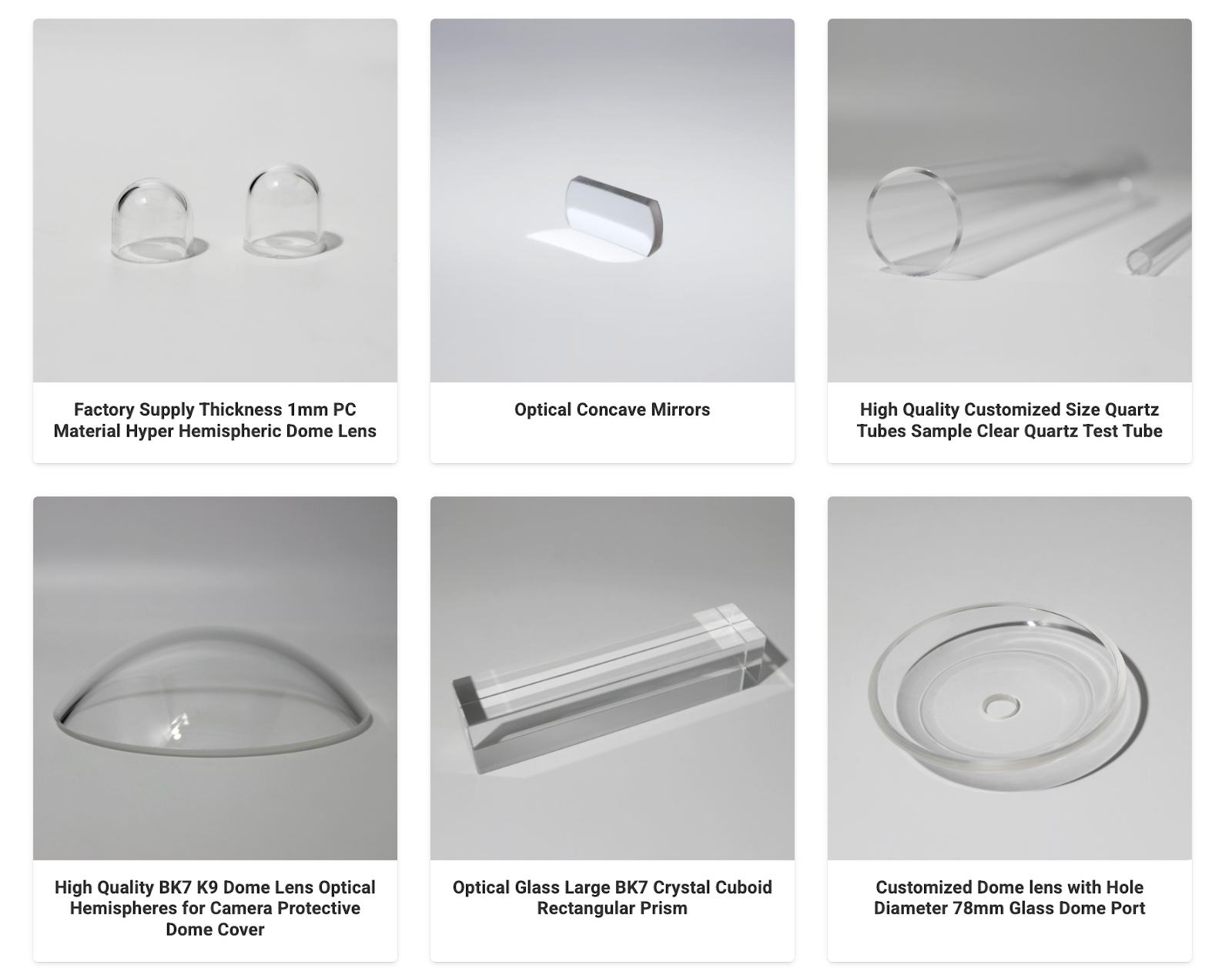🔹 Купольные линзы (Dome Lens) - полусферические и гиперполусферические, для защиты камер и оптических систем, в том числе с отверстиями под заказ